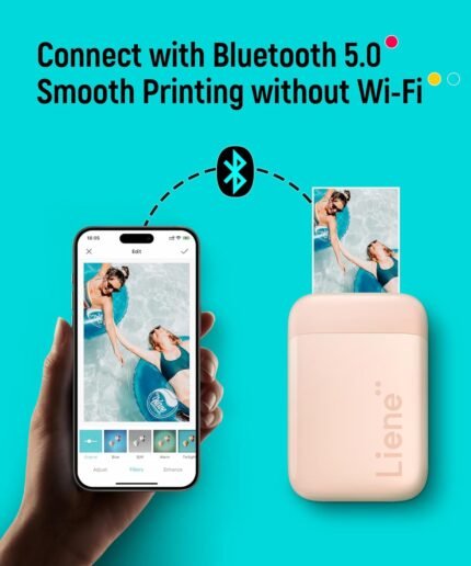 Liene Photo Printer, 2×3 Mini Instant Portable Color Mono Picture Printer w/ 50 Zink Adhesive Paper, Bluetooth 5.0, Compatible w/iOS & Android, Small Photo Maker for iPhone, Smartphones, Pink | ā Art Stationers Best Choice