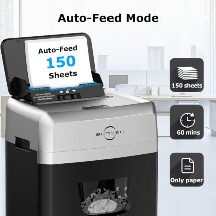BONSEN 150-Sheet Autofeed Paper Shredder for Office, 60 Mins Heavy Duty Micro-Cut Shredders for Home Office Use, P-4 High Security Commercial Document Shredder with 6 Gal Large Capacity Bin (S3114) | ā Art Stationers Best Choice