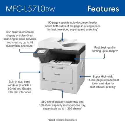 Brother MFC-L5710DW Business Monochrome Laser All-in-One Printer with Wireless Networking and Duplex Print, Scan, and Copy, Works with Alexa | ā Art Stationers Best Choice