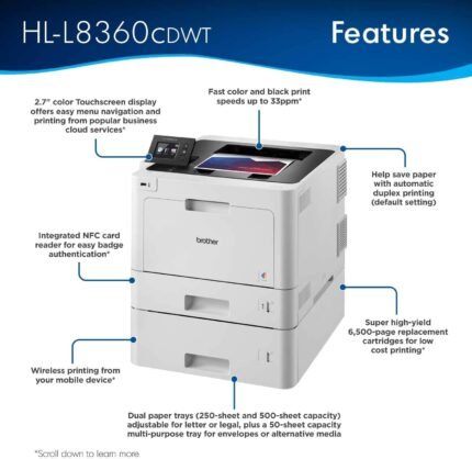 Brother Printer HLL8360CDWT Business Color Laser Printer with Duplex Printing, Wireless Networking and Dual Trays, White | ā Art Stationers Best Choice