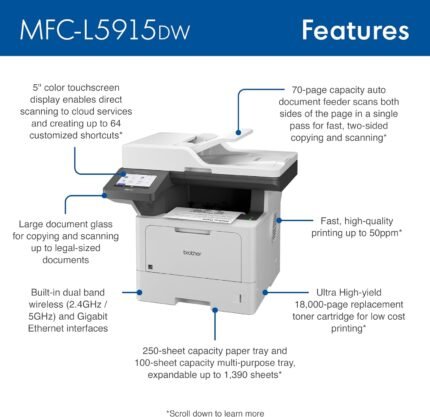 Brother Professional Laser Printer All-in-One with Scanner and Copier, High-Speed 50 ppm Monochrome Printing, Wireless Network Ready, Dual-Band WiFi, Auto 2-Sided Print (MFC-L5915DW) | ā Art Stationers Best Choice