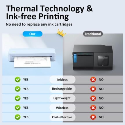 Inkless Portable Printer for Travel, Wireless Thermal Printer Supports 8.5 x 11 Inch Thermal Paper, Bluetooth Machine Includes Carry Case and 3 Rolls of Paper Kit, Black | ā Art Stationers Best Choice