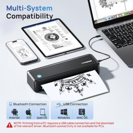 Portable Thermal Printer, Wireless & Bluetooth Mini Inkless Printer for Travel, Office, Home, Supports 8.5x11inch, Compatible with iPhone, Android, Laptop(Black) | ā Art Stationers Best Choice