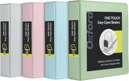 Oxford 3 Ring Binders, 2 inch ONE-Touch Easy Open D Rings, 3-Sided View Binder Covers, Binders for School, Xtralife Hinge, Non-Stick, PVC-Free, Natural Pastel, 530-Sheet Capacity, 4 Pack (79923) | ā Art Stationers Best Choice