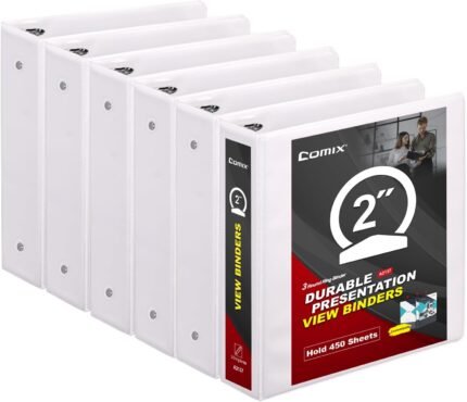 Comix Sturdy 2 inch Round Ring View Binder, 3 Ring Binder 2″, PVC-Free, 450-Sheet Capacity, Fits 8.5″ x 11″ Letter Size Paper 6-Pack (White) | ā Art Stationers Best Choice