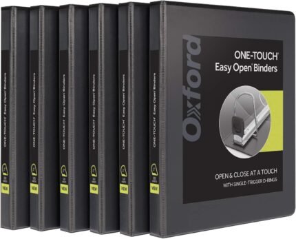 Oxford 3 Ring Binders, 0.5 inch ONE-Touch Easy Open D Rings, Durable Binders for School and Office, View Binder Covers, Xtralife Hinge, Non-Stick, PVC-Free, Black, Holds 125 Sheets, 6 PK (79901) | ā Art Stationers Best Choice
