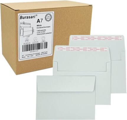 A7 Invitation Envelopes (200 PCS) – 5.25×7.25 in Windowless Design, 120GSM White Paper, Printable Quick Self-Seal for Greeting Cards, Photos, Invoices | ā Art Stationers Best Choice