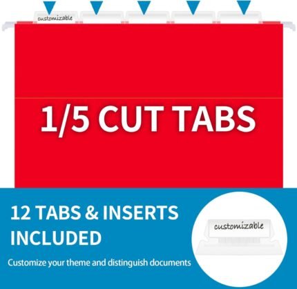 12 Pack Hanging File Folders, Letter Size with 1/5-Cut Adjustable Tabs, 12 Selected Color – File Folder Organizer for Filing Cabinet Office Home, Designed for Bulky Files, Medical Charts | ā Art Stationers Best Choice