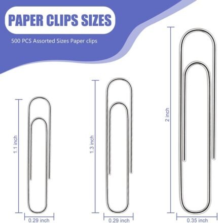 Paper Clips, 500 Pcs Assorted-Size Paperclips, Premium Silver Paperclip Large Medium and Small, Rustproof Metal Paper Clips for Office, School, Home | ā Art Stationers Best Choice