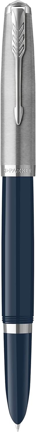 Parker 51 Fountain Pen, Midnight Blue Barrel, Chrome Trim, Fine Nib, Black Ink Cartridge, Gift Box | ā Art Stationers Best Choice