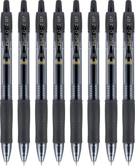Pilot G2 Premium Gel Roller Pens 0.7, Fine Point Smooth Writing Pens Black, Pack of 8 | ā Art Stationers Best Choice