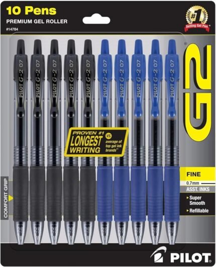 PILOT G2 Pens 0.7 mm – Fine Point, Refillable & Retractable Ballpoint Pens, Pack of 10; 5 Black & 5 Blue | ā Art Stationers Best Choice