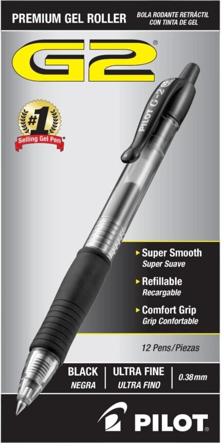 Pilot, G2 Premium Gel Roller Pens, Ultra Fine Point 0.38 mm, Pack of 12, Black | ā Art Stationers Best Choice