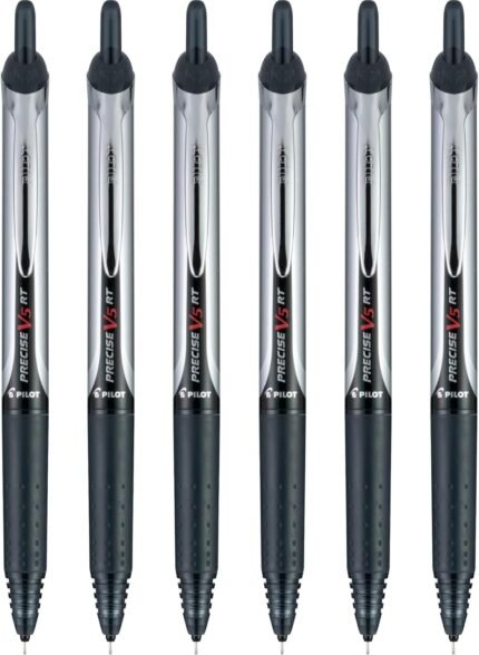 Pilot, Precise V5 RT Refillable & Retractable Rolling Ball Pens, Extra Fine Point 0.5 mm, Black, Pack of 6 | ā Art Stationers Best Choice