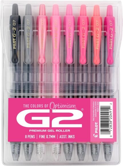 Pilot, G2 Premium Gel Roller Pens, G2 Boost Pink Pack, The Colors of Optimism, 8 Pack Pouch, Fine Point 0.7 mm, Assorted | ā Art Stationers Best Choice