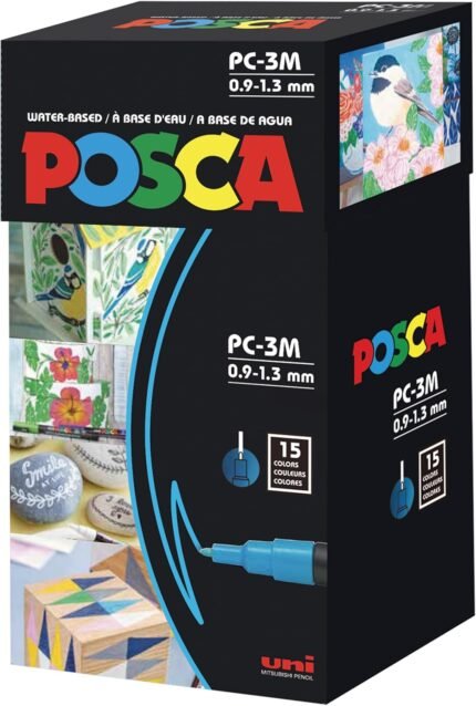 Posca Paint Art Markers, Set of 15 5M Medium Posca Markers with Reversible Tips, Set of Acrylic Paint Pens for Fabric, Metal, Glass, Rocks, Wood and Canvas | ā Art Stationers Best Choice