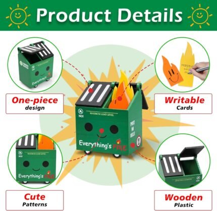 PUNICA Dumpster Fire Pencil Holder with 100 Pcs Flame Note Cards, Funny Office Desk Accessories Decor, Great Gifts for Coworkers Teacher – Green (Already Assembled) | ā Art Stationers Best Choice