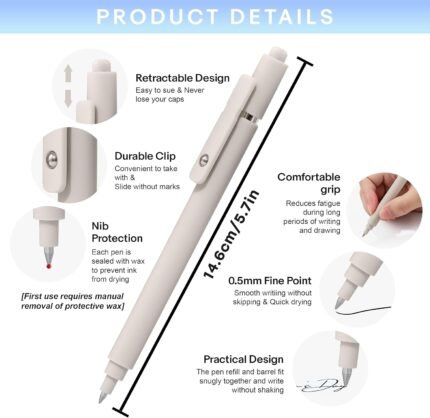RIANCY Aesthetic Pens Beige Pens 5Pcs 0.5mm Quick Dry Black Ink Gel Pens Fine Point Smooth Writing Cute Pen Japanese Stationary Home Work Essentials Nurse School Gifts Office Supplies | ā Art Stationers Best Choice