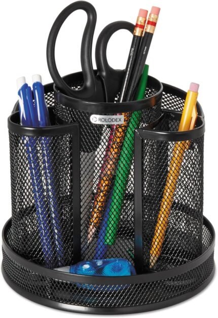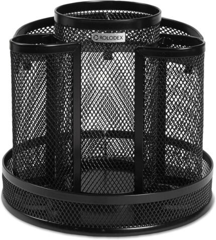 Rolodex Desk Organizer Rotating Office Supply Caddy Mesh Black (6.5″ x 6.5″ x 6.25″) | ā Art Stationers Best Choice