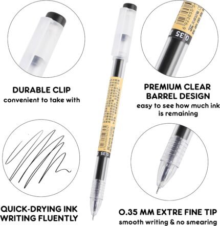 RIANCY Black Gel Ink Pens, 0.35mm Extra Fine Point Tip Smooth Writing Rollerball Pens, Japanese Style No Smudge Ballpoint Pen, Quick Drying for Journaling Office School Stationery Supplies 12pcs | ā Art Stationers Best Choice
