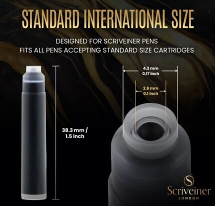Scriveiner Fountain Pen Ink Cartridges – Black – 20 Standard International, Made in UK, The Best Cartridge for Your Scriveiner Pen, Refill Size Fits A Wide Range of Fountain Pens | ā Art Stationers Best Choice
