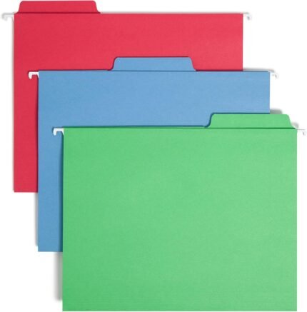 Smead FasTab Hanging File Folder, 1/3-Cut Built-in Tab, Letter Size, Assorted Primary Colors, 18 Count (64053) | ā Art Stationers Best Choice