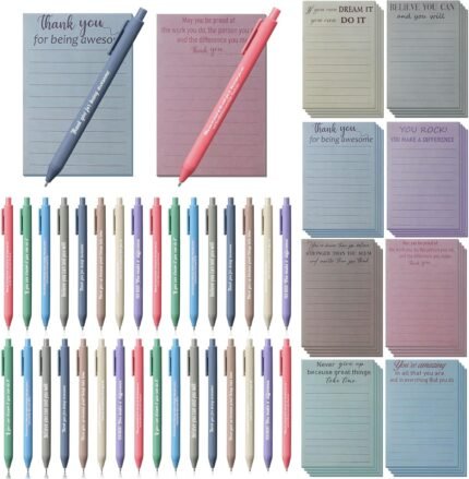 Thenshop 32 Sets Sticky Notes with Ballpoint Pens 1600 Sticky Notepads Appreciation Gifts for Teacher Employee Office School Bible Studying Supplies(Inspirational,5.91 x 3.94 Inches) | ā Art Stationers Best Choice