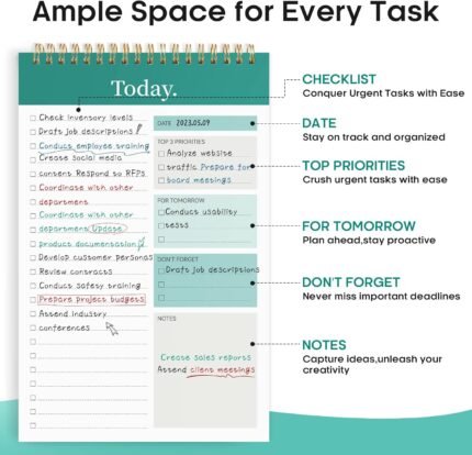 Taja To Do List Notebook Pad, Undated Daily Planner Perfect for Daily Tasks, Goal Setting, Work, Notepad Suitable for Office, Home & School, Greenery Sway, 52 Sheets | ā Art Stationers Best Choice