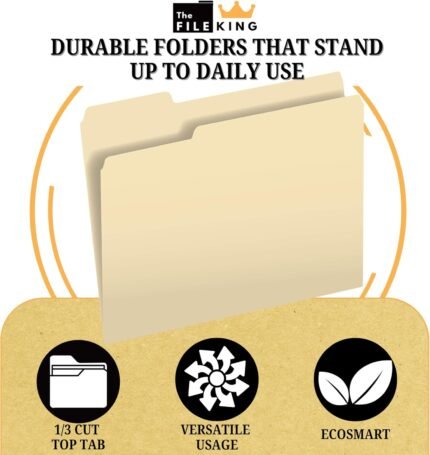 The File King 1/3 Cut File Folders Letter Size – 100 Pack | Manilla Folders 8.5 x 11 | Assorted 3 Tabs | Heavy Duty 11-Point Fiber | Made in USA | Undercut Front for Easy Labeling & Organization | ā Art Stationers Best Choice