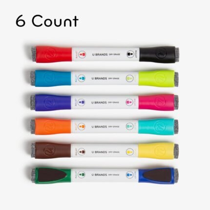 U Brands Fine Tip Dry Erase Markers with Eraser, Magnetic Double Ended Whiteboard Markers, Low Odor, Assorted Bright Colors, Set of 6 | ā Art Stationers Best Choice