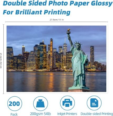 Uinkit 200 Sheets Double Sided Photo Paper Glossy 8.5×11 54lbs Inkjet for Dye Ink 200Gsm Value Bulk Pack Picture 8.5 x 11 9.5Mil for Inkjet Printing Printer (200sheets, 8.5×11) | ā Art Stationers Best Choice
