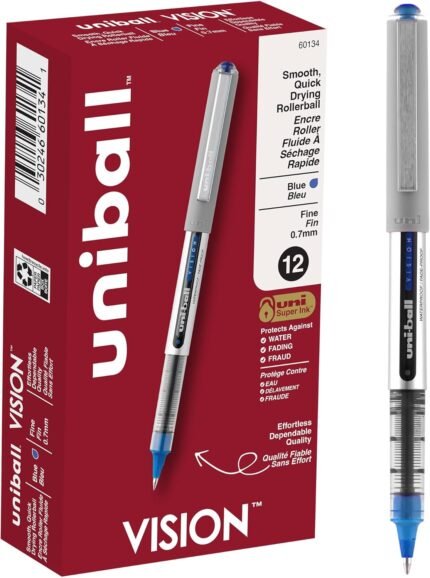 uni-ball uniball Vision Rollerball Pens with 0.7mm Fine Point, Blue, 12 Count | ā Art Stationers Best Choice