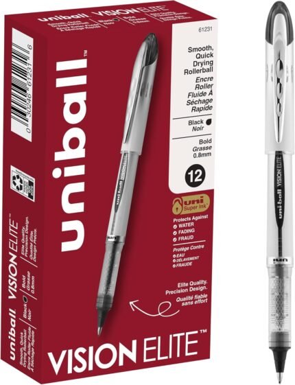uni-ball Vision Elite Rollerball Pens Bold Point, 0.8mm, Black, 12 Pack | ā Art Stationers Best Choice