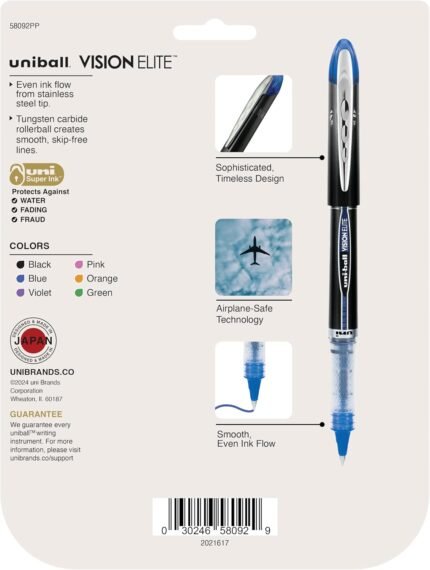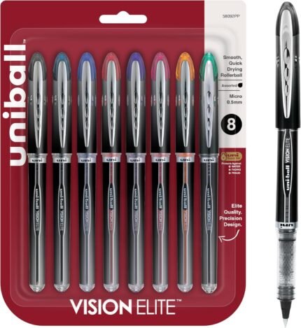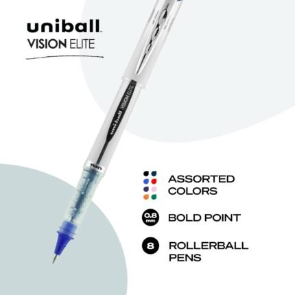 uni-ballĀ® Vision⢠Elite⢠Liquid Ink Rollerball Pens, Bold Point, 0.8 mm, Black Barrel, Assorted Ink Colors, Pack Of 8 | ā Art Stationers Best Choice