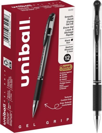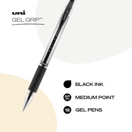 uniball Signo Grip Gel Pen, Stick, Medium 0.7 Mm, Black Ink, Silver/black Barrel, Dozen | ā Art Stationers Best Choice