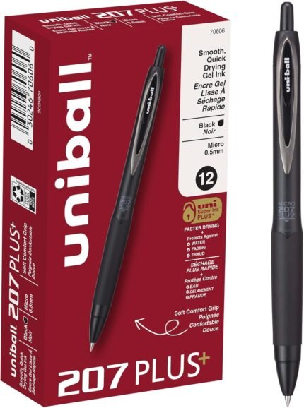 Uniball 207 Plus+ Retractable Gel Pens, Micro Point (0.5mm), Black, 12 Pack | ā Art Stationers Best Choice