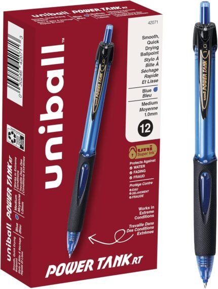 uniball Power Tank Rt Ballpoint Pen, Retractable, Bold 1 Mm, Blue Ink, Translucent Blue Barrel, Dozen | ā Art Stationers Best Choice