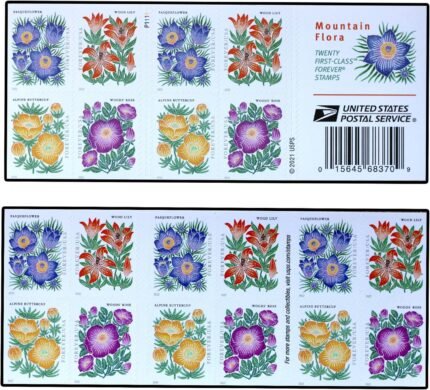 USPS Mountain Flora (Booklets of 20) (Wood Lily, Alpine Buttercup, Woods Rose, Pasqueflower) Postage Forever Stamps US First Class Wild Flowers Garden Wedding Valentine 2022 Scott #5672-5675 | ā Art Stationers Best Choice