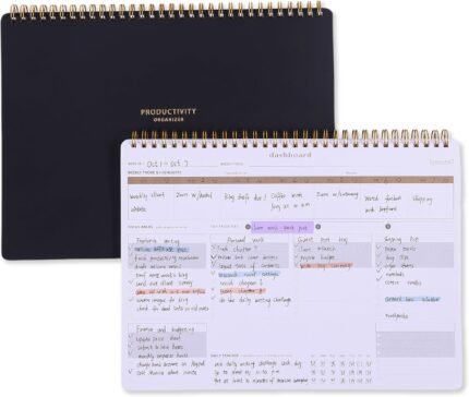 ZERONE CENTRE Productivity Weekly Planner – 54 Sheets Dashboard Spiral Deskpad Has 6 Focus Areas to List Tasks for Goals, Projects, Clients, Academic, or Shopping-Organize Your Daily Work Efficiently | ā Art Stationers Best Choice