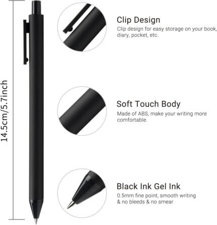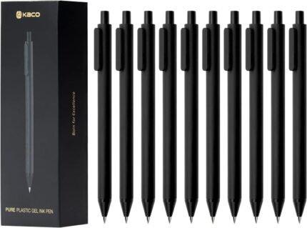 Kaco Gel Pens, 0.5 mm Fine Point, Black Ink 10 Count, Quick Dry Smooth Writing, Aesthetic Office Supplies Refillable Retractable | ā Art Stationers Best Choice