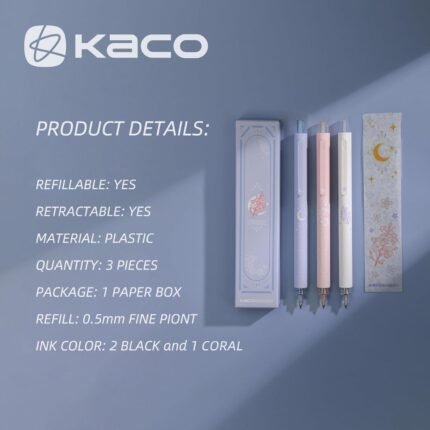KaCo Gel Pens Cute Stationery 3 Pieces 0.5mm Fine Point, Quick Drying Pens for Journaling Aesthetic Office Supplies, 2 Black Ink and 1 Coral Ink | ā Art Stationers Best Choice