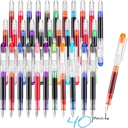 Laumoi Disposable Fountain Pens Set, Colored Ink Fountain Pens for Writing, Extra Fine Nib Classic Design Calligraphy Large Capacity for Journaling Office Supplies Sketching | ā Art Stationers Best Choice