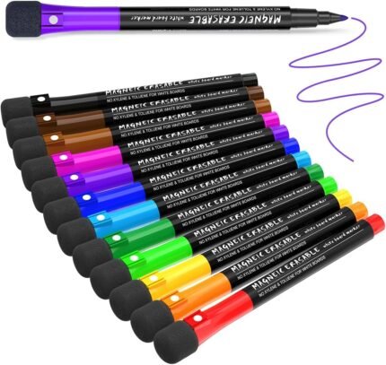 Magnetic Dry Erase Markers Fine Point Tip, 12 Colors White Board Markers Dry Erase Marker with Eraser Cap, Low Odor Whiteboard Markers Thin Marking for Kids Teachers Office School Supplies | ā Art Stationers Best Choice