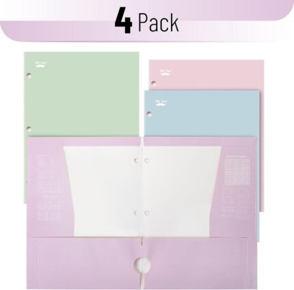 Mr. Pen- Pocket Folders, 4 Pocket, 4 Pack, Pastel Colors, Folders with Pockets 3 Hole Punched, Folder, Binder Folder | ā Art Stationers Best Choice