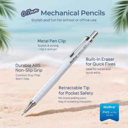 Nicpro 6PCS Art Mechanical Pencil Set, 3PCS Metal Drafting Pencil 0.5 mm & 0.7 mm & 0.9 mm & 3PCS 2mm Graphite Lead Holder (2B HB 2H) For Writing, Sketching Drawing With Lead Refills Case | ā Art Stationers Best Choice