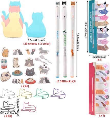 Outus Cat Office Supplies Cute Sticky Notes Paper Clips Gel Ink Pens Cartoon Stickers Party Favor for Cat Lovers Stationery School Office Supplies Desk Accessories(Cute Style) | ā Art Stationers Best Choice