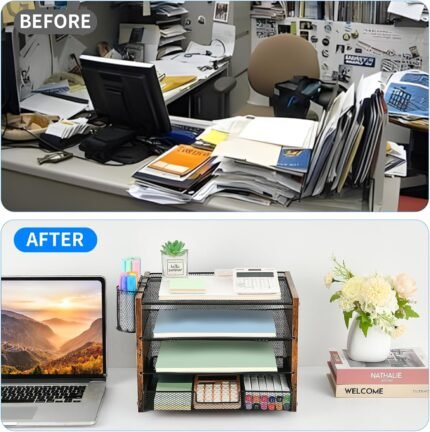 OPNCIE Desk Organizer and Accessories, 4-Tier Paper Letter Tray File Organizer with Drawer & 2 Pen Holder, Office Desk Accessories Workspace Desktop Organizer for Office Supplies(Brown) | ā Art Stationers Best Choice