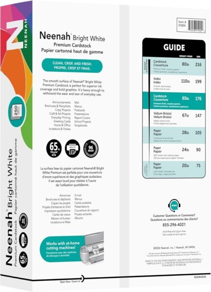 Astrobrights/Neenah Bright White Cardstock, 8.5″ x 11″, 65 lb/176 gsm, White, 75 Sheets (90905-02) – Packaging May Vary | ā Art Stationers Best Choice