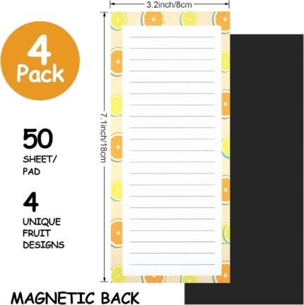 4 Pack Magnetic Notepads for Refrigerator, Grocery List Magnet Pad for Fridge, Fruit Design Magnetic Grocery List Pad for Fridge, Full Magnet Back Shopping Lists, 50 Sheets Per Note Pads | ā Art Stationers Best Choice