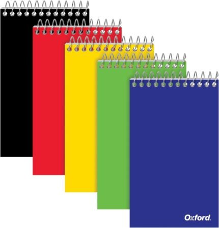 Oxford Spiral Memo Pads, Top Wire Bound, 3 x 5 Inch Pocket Notepad, College Ruled, Assorted Primary Colors, 75 Sheets, 5 Pack (25091) | ā Art Stationers Best Choice